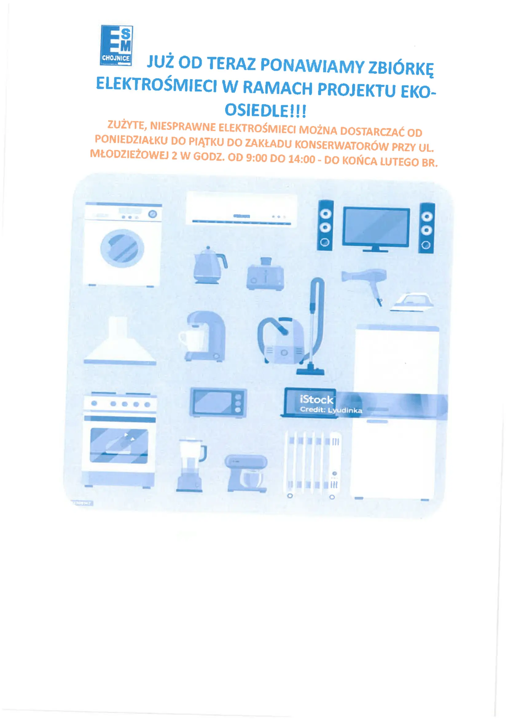 Zużyte, niesprawne elektrośmieci można dostarczać od poniedziałku do piątku do zakładu konserwatorów przy ul. Młodzieżowej od 9:00 do 14:00 do końca lutego