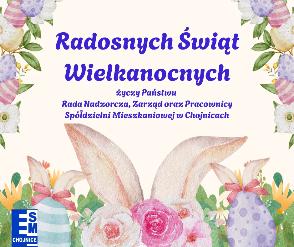 Radosnych Świąt Wielkanocnych życzą Rada Nadzorcza, Zarząd oraz Pracownicy Spółdzielni Mieszkaniowej w Chojnicach